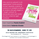 Mercoledì 19 novembre alle h.17,30 presso l’Aula Magna del Seminario Vescovile di Piacenza, in via Scalabrini 67, si terrà la presentazione del volume “La cultura è di tutti” di Paola Dubini e Christian Greco. Parteciperanno l’autrice Paola Dubini e la prof.ssa Valeria Cicala. La presentazione è organizzata dalla sezione di Piacenza di Italia Nostra in […]