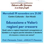 Lo sguardo di un educatore è quello di una agronoma? Si ha cura della terra come si ha cura di una persona? Lisa Pagani, agronoma e guida ambientale escursionista,Paolo Pantrini, educatore professionale socio pedagogico, si confronteranno il 25 novembre alle ore 17 nel Salone Monumentale della Biblioteca Passerini Landi di Piacenza, in “Educare è un […]