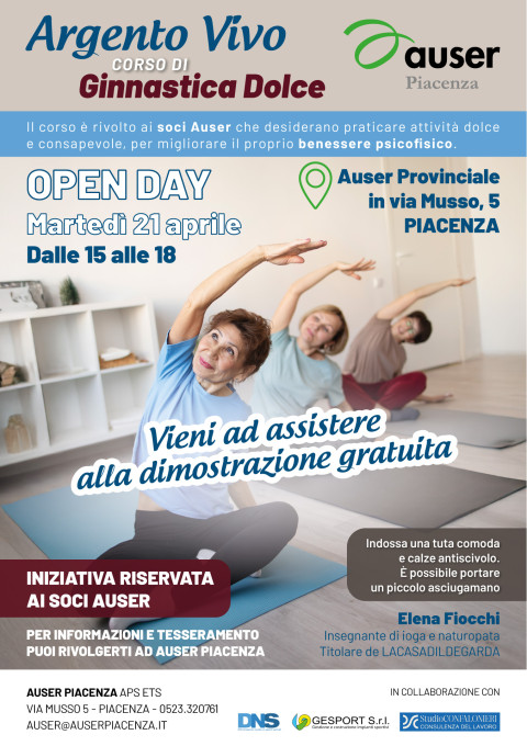 Il progetto prenderà ufficialmente il via con un Open Day gratuito dedicato alla presentazione del primo corso di ginnastica dolce, in programma Martedì 21 aprile, dalle ore 15 alle 18presso la sede provinciale di Auser Piacenza APS in Via Musso 5 – Piacenza.