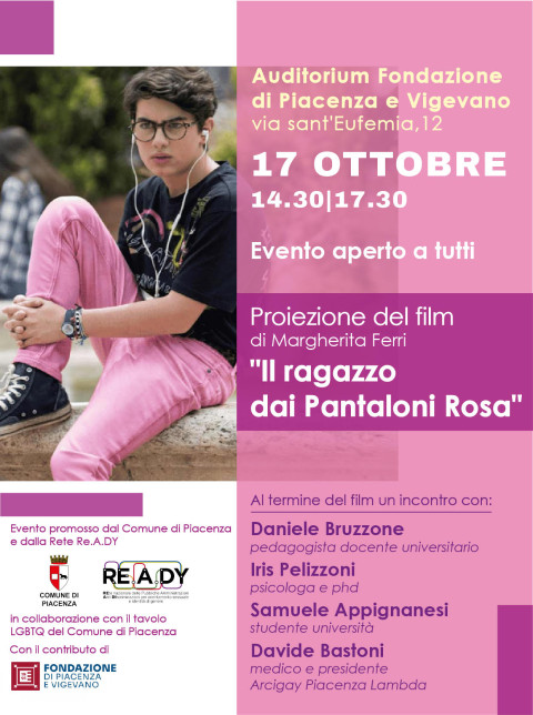 evento pubblico presso l'Auditorium Fondazione di Piacenza e Vigevano venerdì 17 ottobre alle ore 14:30, a conclusione dell'incontro annuale di R.E.A.DY., Rete italiana delle Regioni, Province Autonome ed Enti Locali impegnati per prevenire, contrastare e superare le discriminazioni per orientamento sessuale e identità di genere.