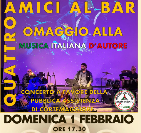 Sul palco si esibiranno gli artisti del gruppo piacentino “Quattro Amici al Bar” composto dal cantante Nicolò Scarabelli, dal chitarrista Alessandro Caffarena, dal batterista Vincenzo Mattiello e dal musicista polistrumentista Mario Scaletti, che accompagneranno il pubblico in un pomeriggio di grande musica italiana d’autore, emozioni e partecipazione civile, in una cornice storica e suggestiva come quella del Teatro Duse di Cortemaggiore.