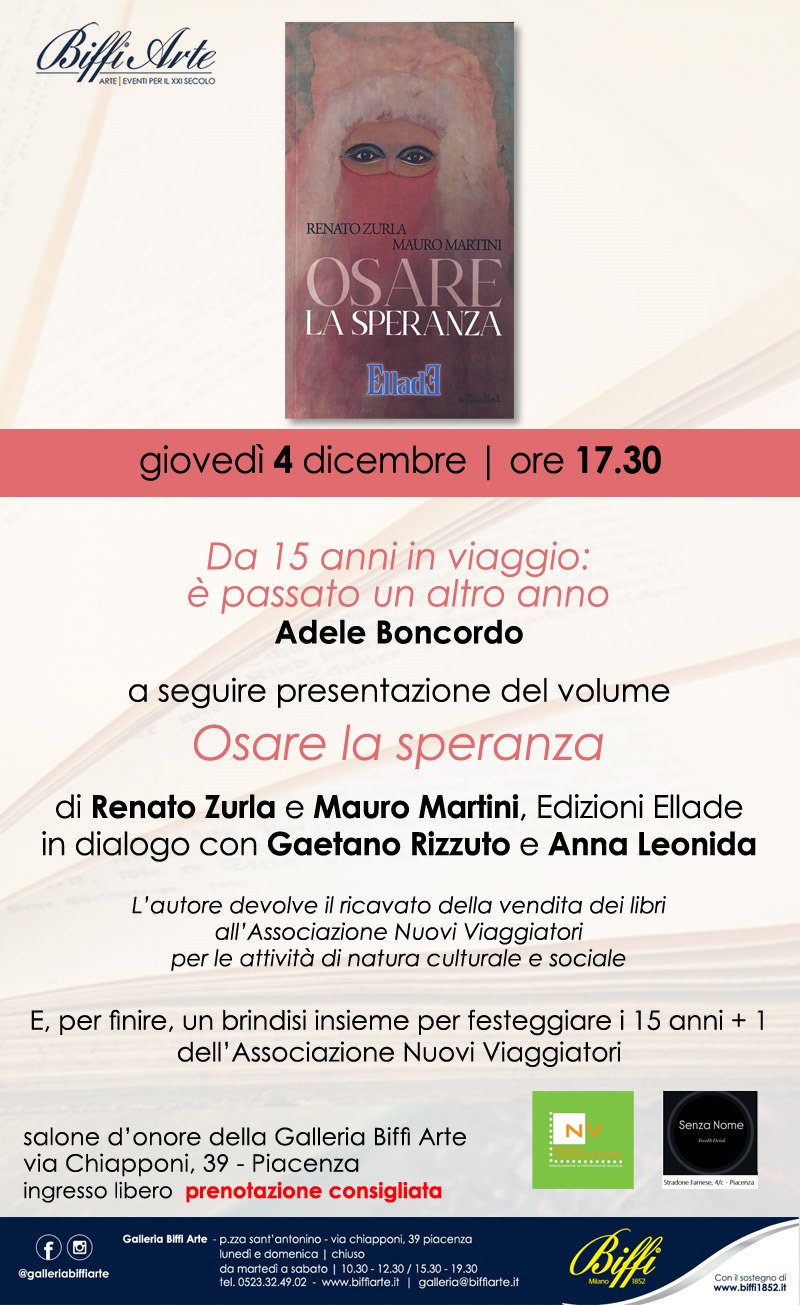 A seguire, la presentazione del volume “Osare la speranza” di Renato Zurla e Mauro Martini, Edizioni Ellade, in dialogo con Gaetano Rizzuto e Anna Leonida.