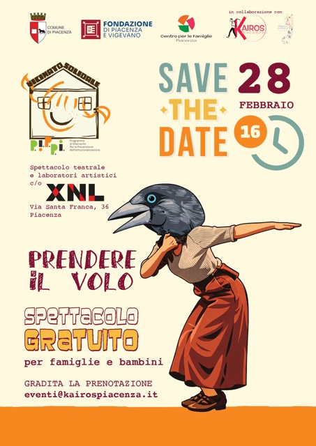 S๐ฎ๐ฏ๐ฎ๐๐ผ ๐ฎ๐ด ๐ณ๐ฒ๐ฏ๐ฏ๐ฟ๐ฎ๐ถ๐ผ, ๐ฎ๐น๐น๐ฒ ๐ผ๐ฟ๐ฒ ๐ญ๐ฒ, ๐ฎ ๐ซ๐ก๐ ๐ฃ๐ถ๐ฎ๐ฐ๐ฒ๐ป๐๐ฎ (Via Santa Franca 36) ๐๐ฎ ๐ถ๐ป ๐๐ฐ๐ฒ๐ป๐ฎ โ๐ฃ๐ฟ๐ฒ๐ป๐ฑ๐ฒ๐ฟ๐ฒ ๐ถ๐น ๐๐ผ๐น๐ผโ, spettacolo teatrale e laboratorio artistico dedicato a bambini dai 3 agli 8 anni e alle loro famiglie promosso da Kairos Piacenza