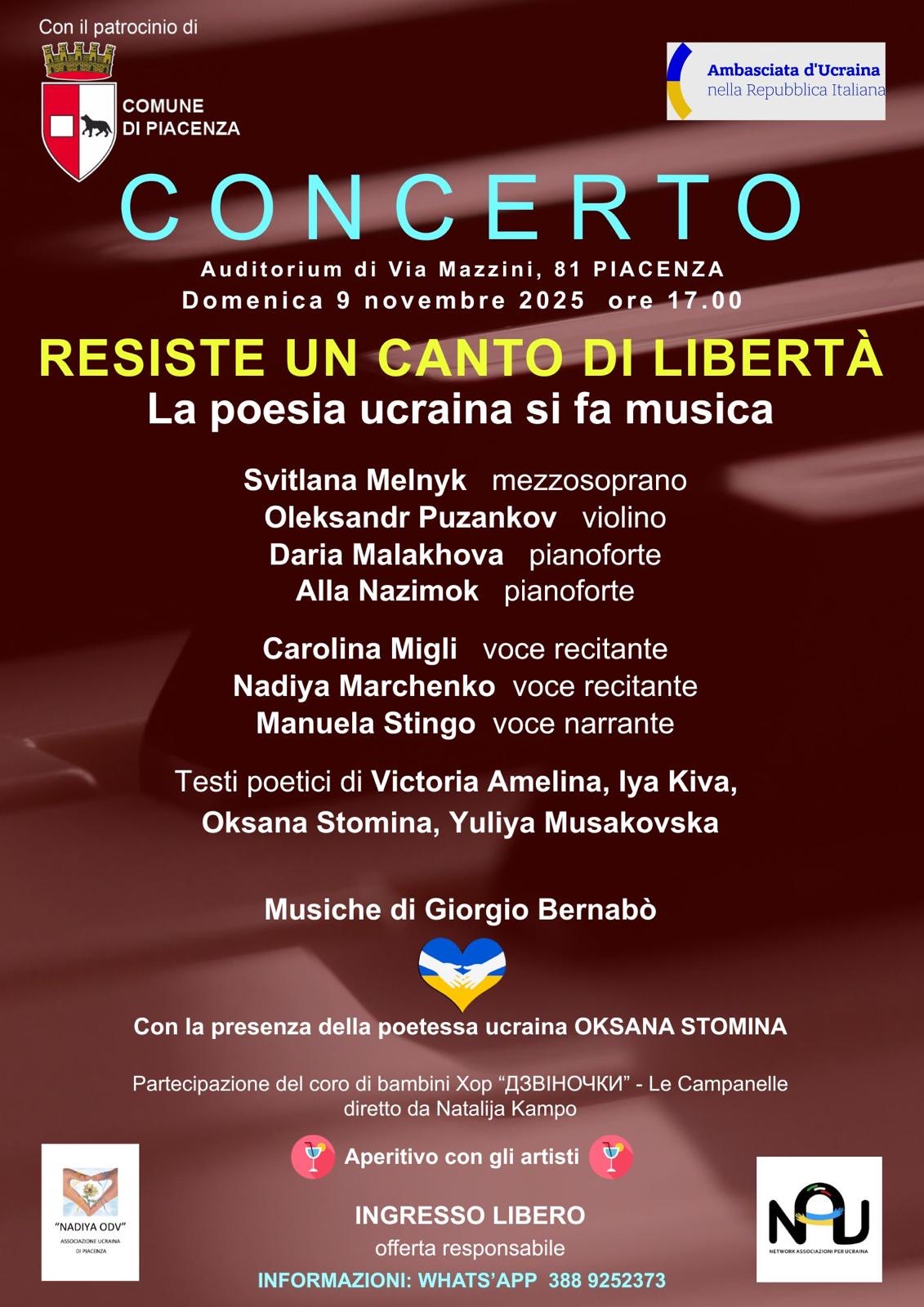 il concerto è organizzato dall’associazione ucraina di Piacenza “ Nadiya odv” con il patrocinio del Comune di Piacenza e dell’Ambasciata Ucraina di Roma, in collaborazione con il compositore e ideatore del progetto Giorgio Bernabò